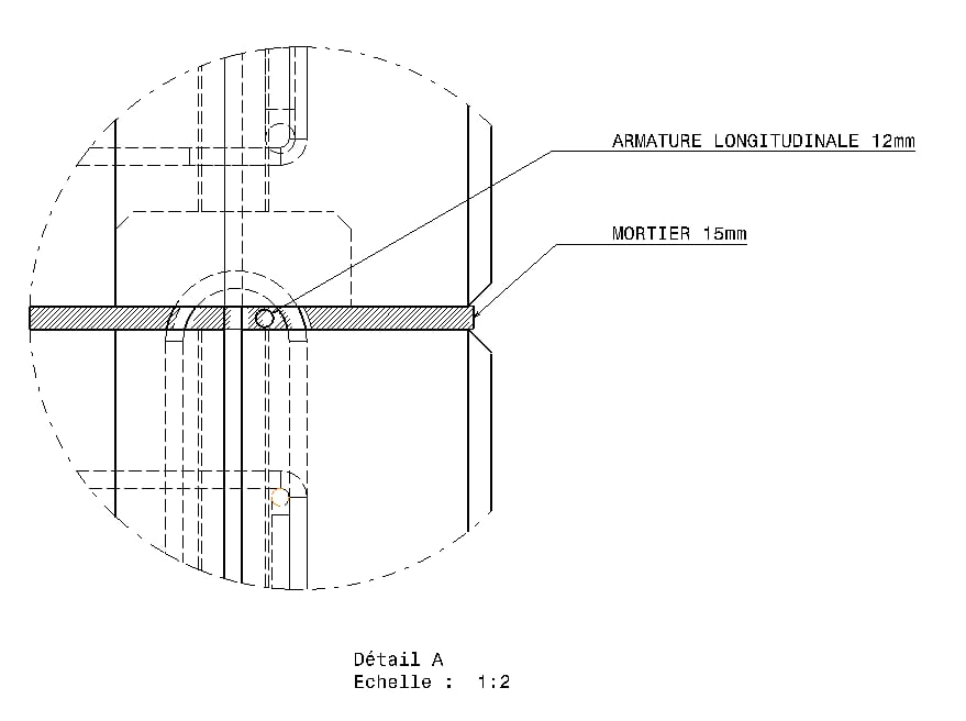 Pendant l'assemblage, une tige d'acier verticale est installée entre chaque bloque dans l'oeuillet de levage qui est ensuite consolider dans le mortier.